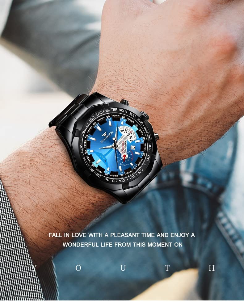 Finzun S001 Men's Waterproof Wristwatch Calendar Watch (Black Steel Blue Face) Finzun S001 男士防水腕表日历手表 非機械(黑钢蓝表面)